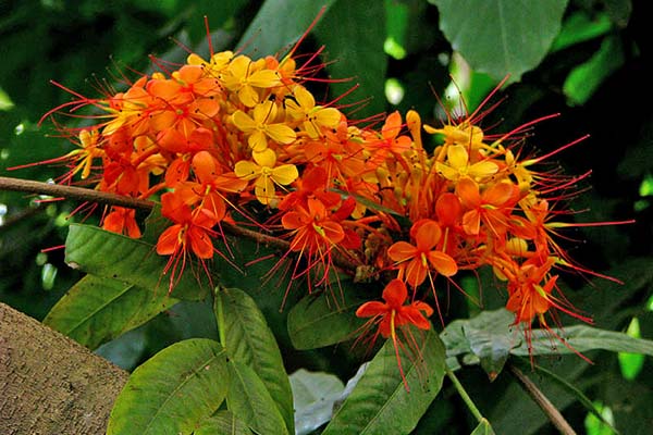 Bunganya berwarna jingga merah atau putih yang tumbuh bergerombol pada ujung batang. Benang sari mencuat diantara kelopak bunga. Bunga bermunculan menjelang musim penghujan. Tingginya kurang dari 6 m.